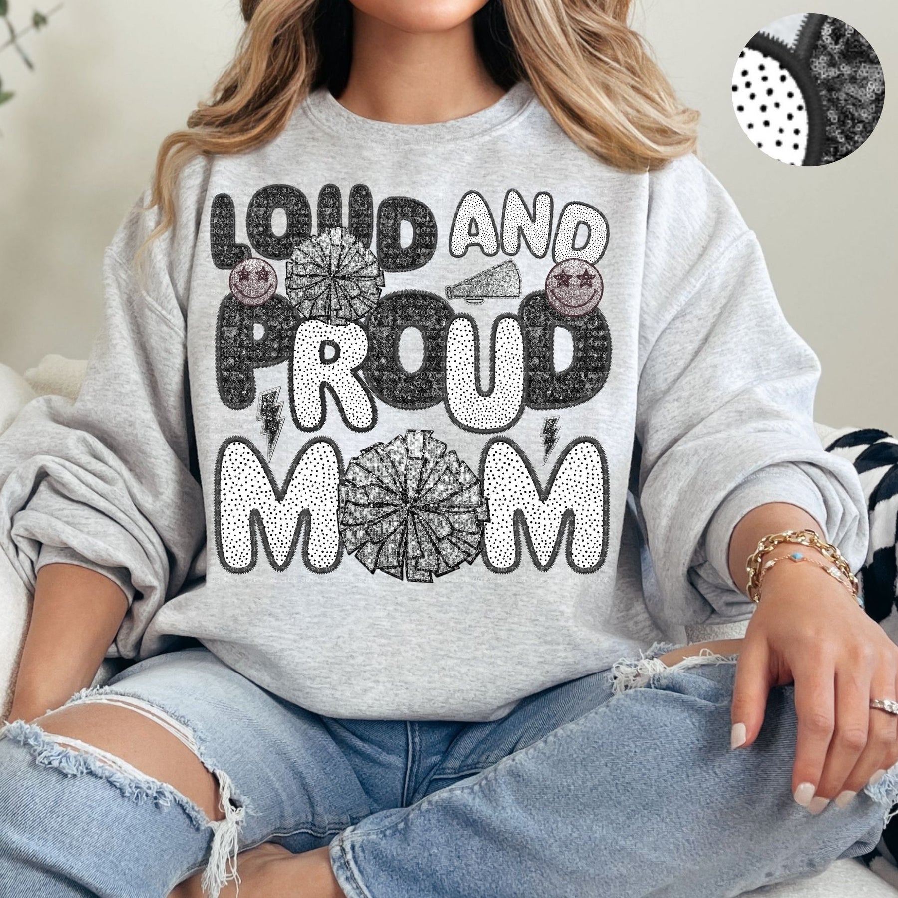Loud and Proud Sports Mom Faux Embroidery DTF Print