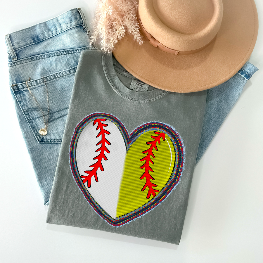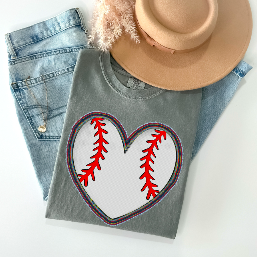 Faux Stitched Baseball Heart DTF Print
