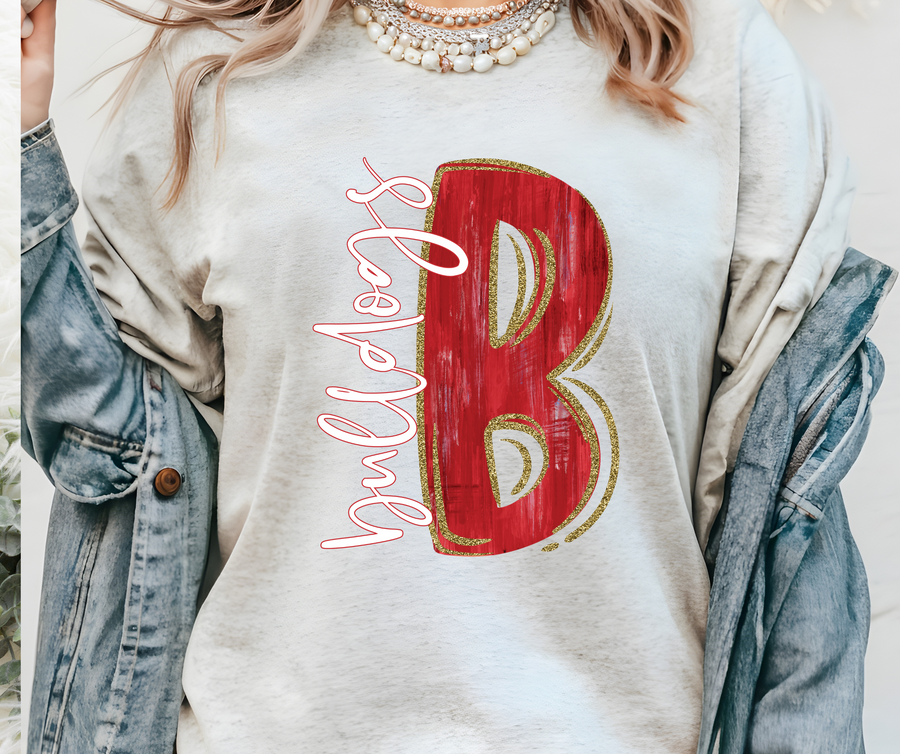 Bulldogs Red & Gold Painted Mascot DTF Print