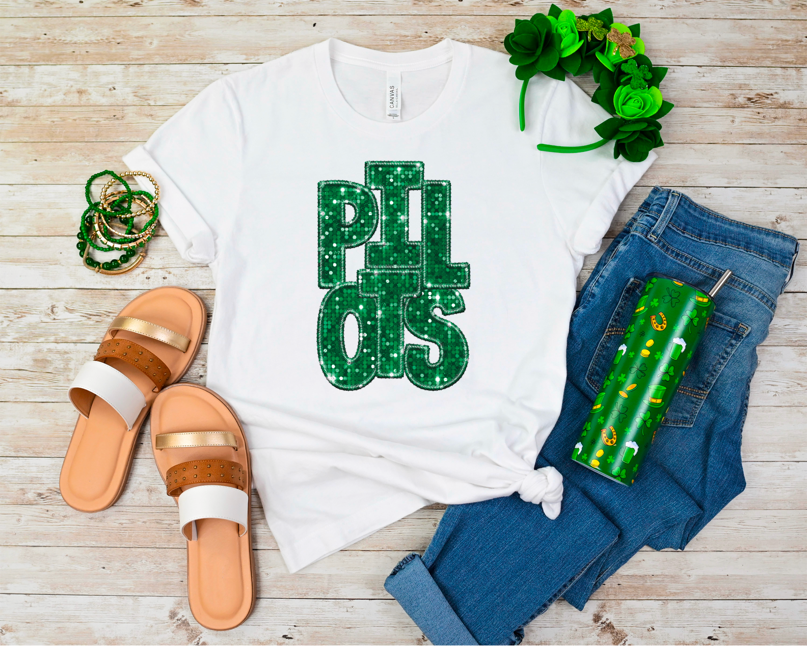 Green Faux Glitter Team Spirit Mascots DTF Print