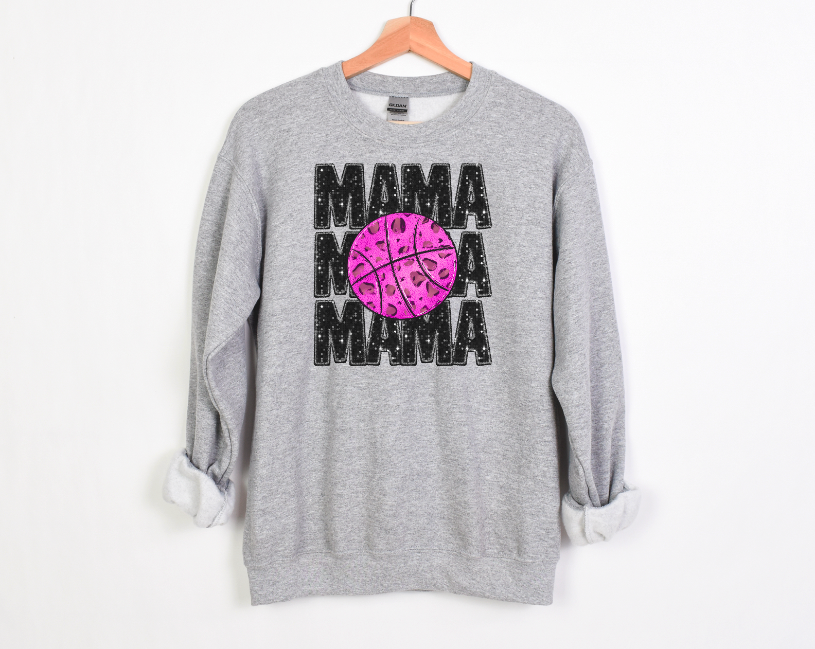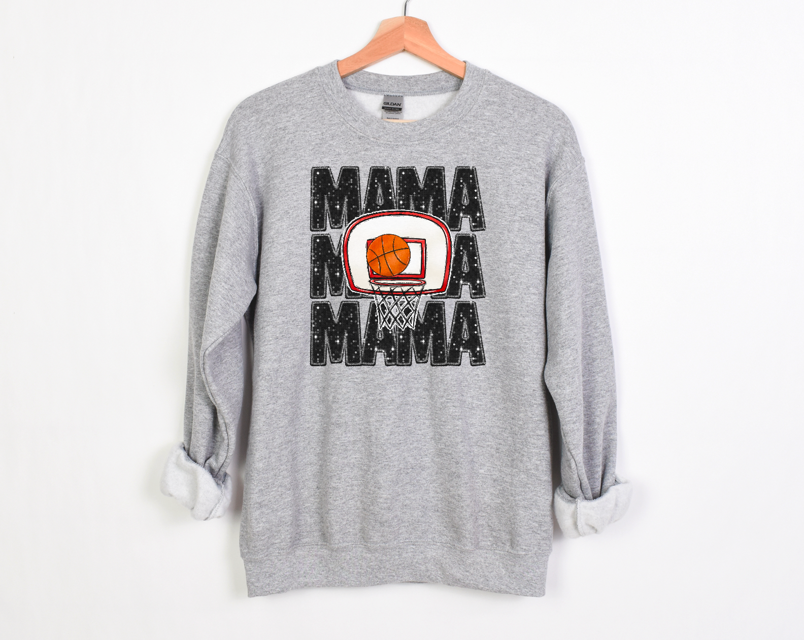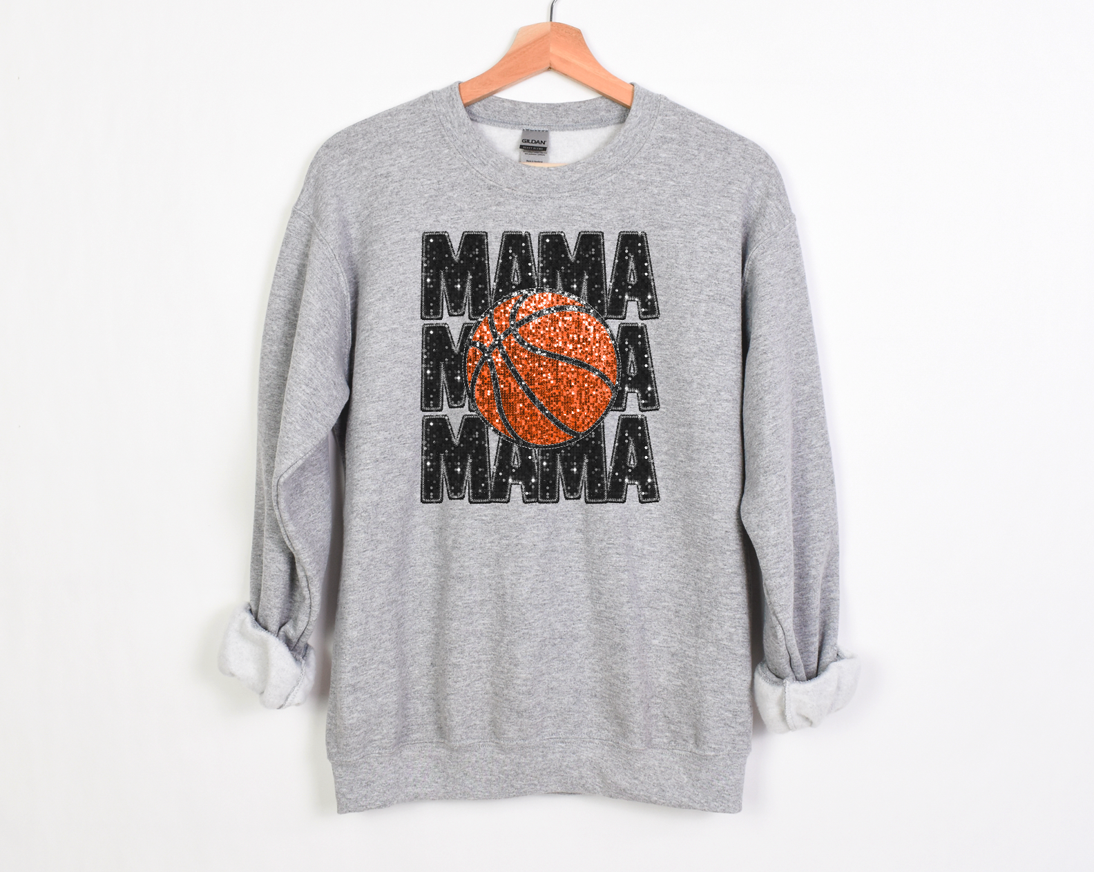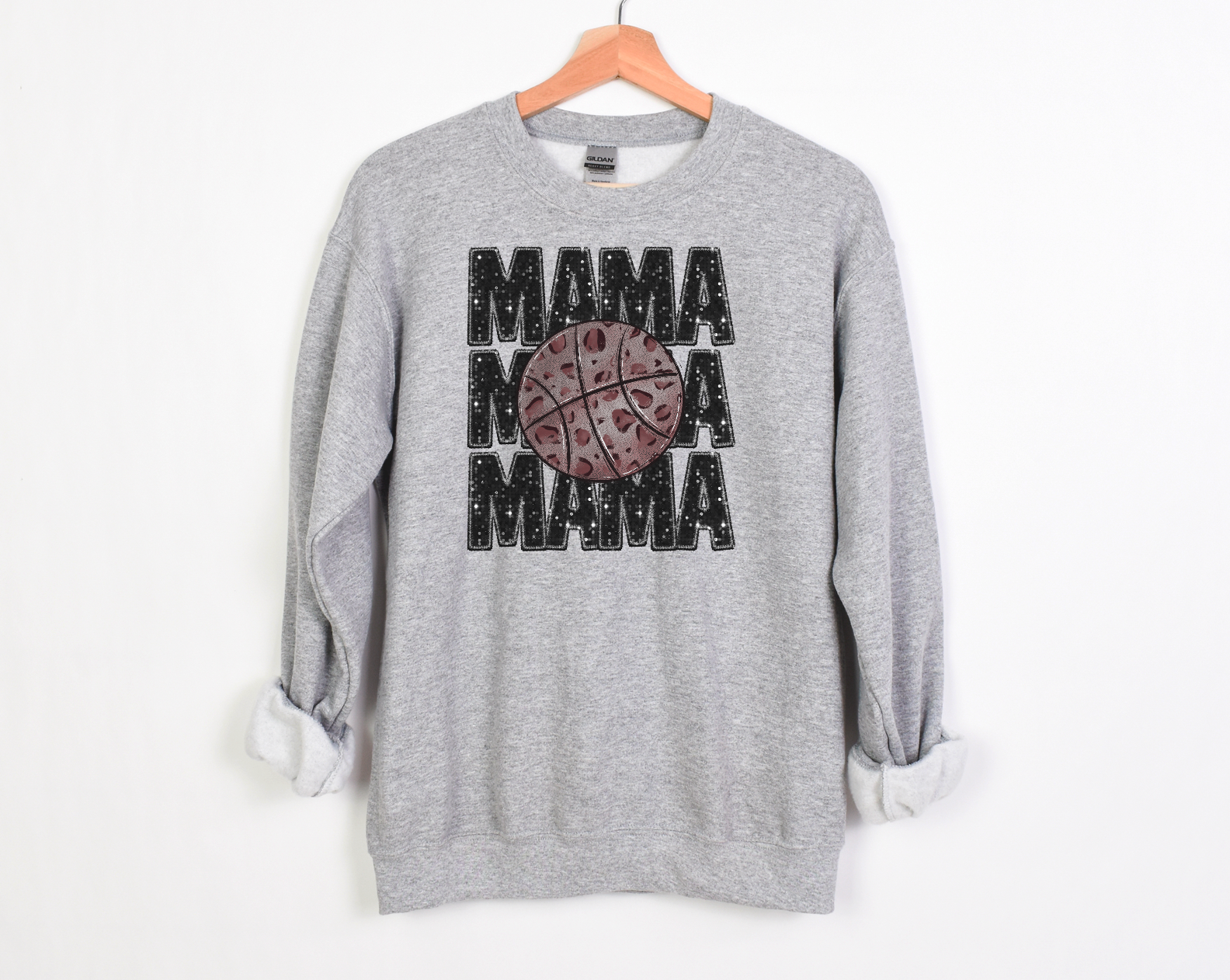 Stacked Basketball Mama Faux Glitter DTF Print